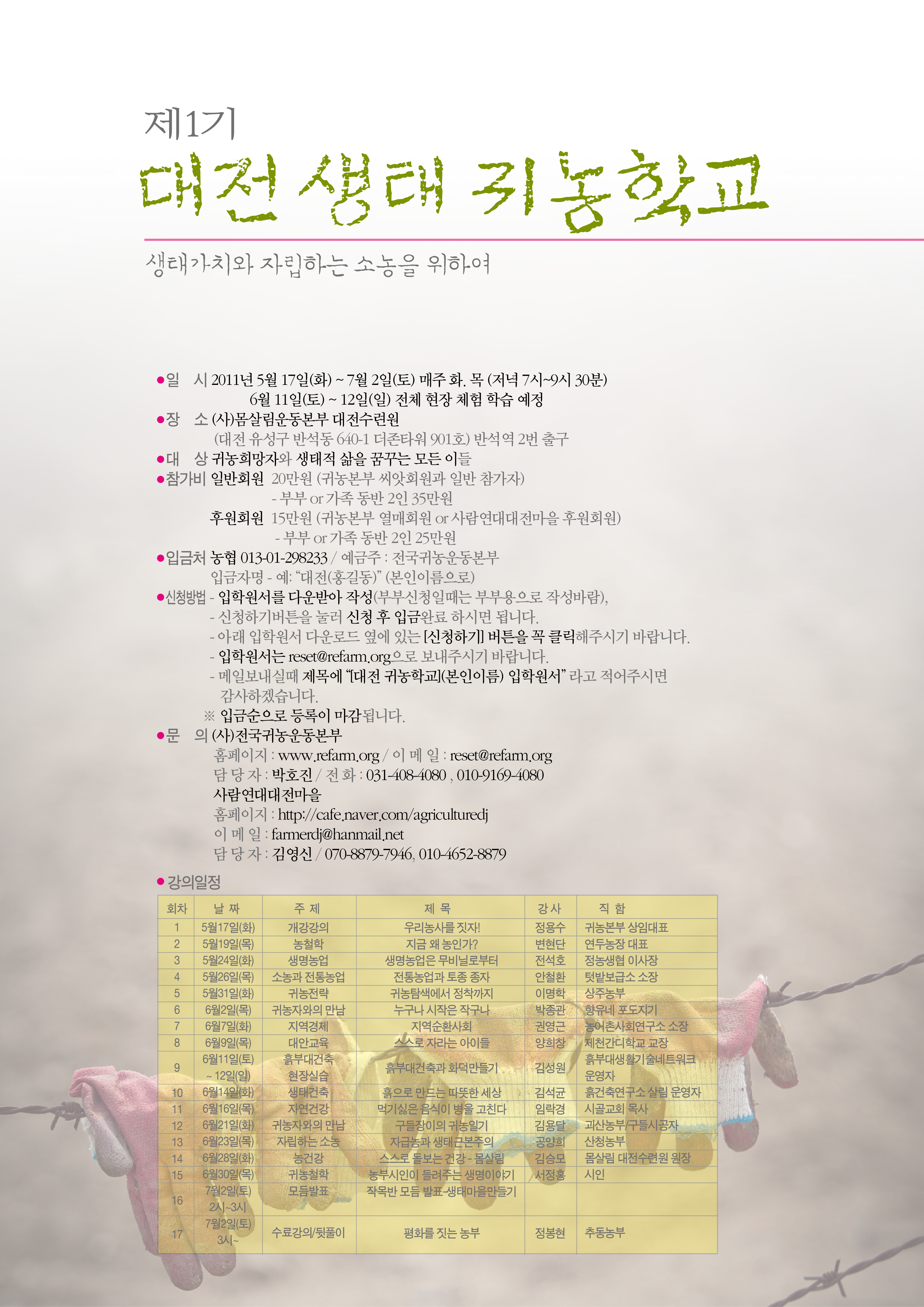 대전 생태 귀농학교 1기 모집합니다. 상세내용