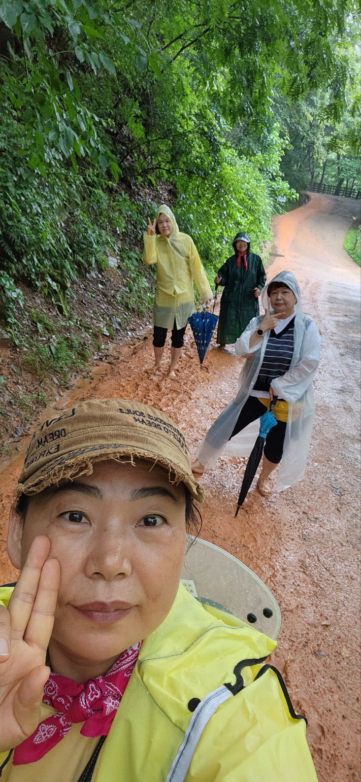 장마가 계속되고 있지만 계획되었던 일정대로 장동맨발걷기 우비입고 우산쓰고 고고