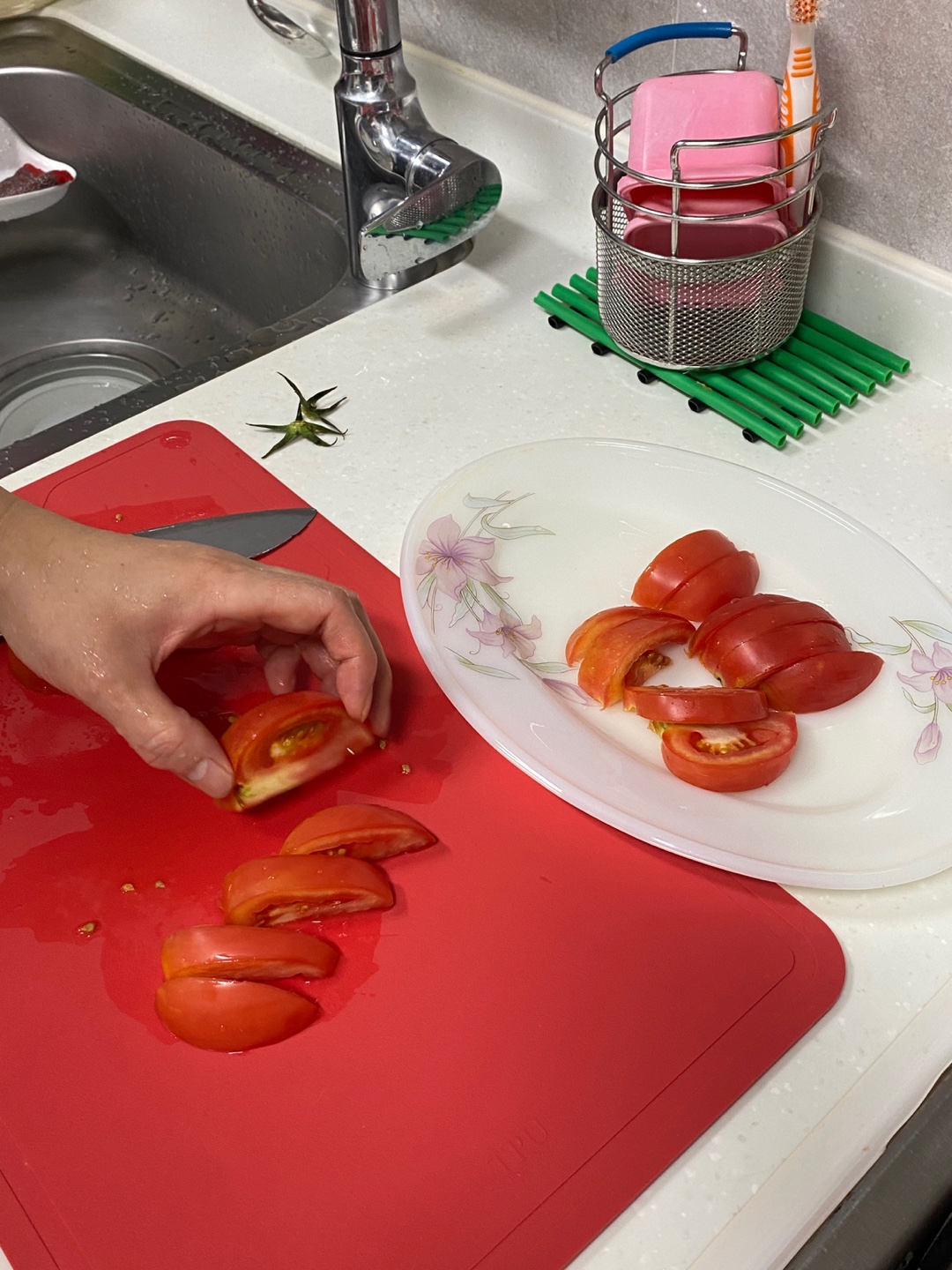 계란후라이 및 토마토 올리브구이 만들어서 함께 시식
