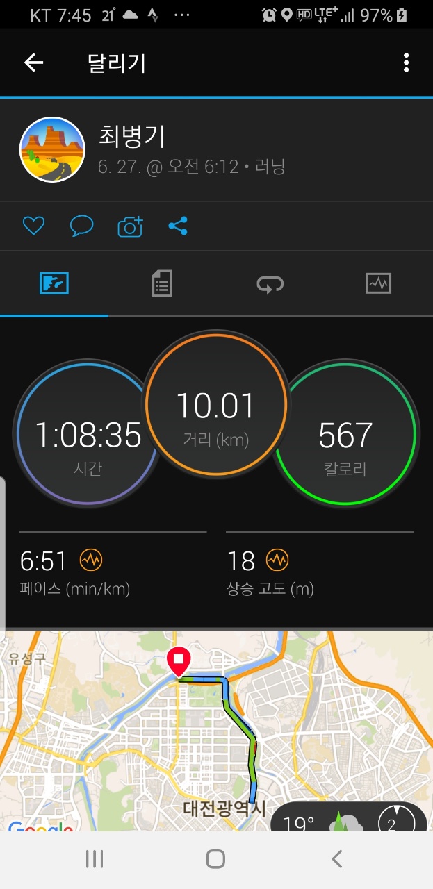 오늘은 마라톤클럽 훈련부장이시면서 민들레 조합원이신 최병기님이 10키로미터를 함께 뛰셨다. 전문가 분의 조언도 들으며 함께 뛰었다. 5키로 지점까지 초반은 천천히 뛰다가 턴해서는 조금씩 스피드를 내는게 몸이 덜 피곤하고 실력이 는다고 하시며 정철주님과 앞서 가셨다. 나머지 반원들도 더 힘을 내서 오늘은 스피드 좀 올려 뛰었다. 어제의 피로와 각자의 사정에도 몸과 맘을 잘 다스려 다들 최선을 다하는 모습이 멋져보였다.